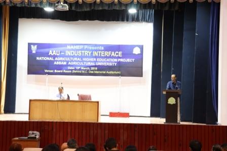 The National Agricultural Higher Education Project, under the stewardship of Dr. K.M. Bujarbaruah, Hon’ble Vice Chancellor and Dr. K.K. Sharma, PI, NAHEP organized an AAU-Industry Interface on the 19th of March, 2019. The event brought together the students of Assam Agricultural University and 10 dynamic entrepreneurs/ Industrialists from across North East India, who are excelling in their field of work. The meeting provided the university a scope to showcase its technologies to the general public, which was aptly demonstrated by Dr. Ashok Bhattacharyya,(DR, Agri), Dr. B. Bhattacharyya(DDR, Vety) and Dr. Bibha Chetia Borah(in-Charge, Fisheries Research Centre). The students interacted with the entrepreneurs/industrialists regarding establishment of profitable enterprises in the region. The meeting ended on a high note with the vote of thanks by Dr. Rana Pratap Bhuyan, DSW, AAU.